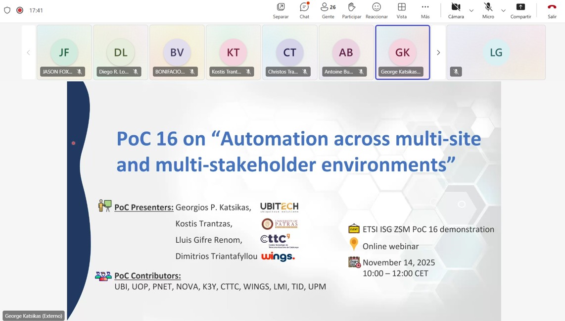 We are pleased to announce the successful conclusion of the online presentation for ETSI ZSM Proof of Concept #16, titled “Automation Platform Across Multi-site and Multi-stakeholder Environments.” The event was hosted via the ETSI Portal and proceeded as planned, showcasing significant advancements in cross-domain orchestration.